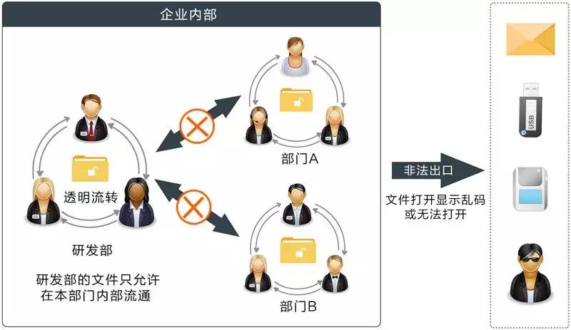奧賽云盾采用驅(qū)動層加密技術(shù),進行文件加密,不改變員工操作習(xí)慣、不改變文件格式、不封閉公司網(wǎng)絡(luò)、不封閉外設(shè)端口,內(nèi)部流通自由正常。 加密文件在未授權(quán)的情況下脫離企業(yè)網(wǎng)絡(luò),文件就無法正常訪問,形成“對外受阻,對內(nèi)無礙”局面!有效保障企業(yè)的數(shù)據(jù)安全。