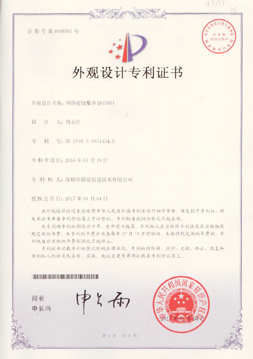 ?????? 上述外觀設(shè)計專利產(chǎn)品用于網(wǎng)絡(luò)存儲設(shè)備,目前已在公司生產(chǎn)的硬盤陣列柜和網(wǎng)絡(luò)存儲設(shè)備等產(chǎn)品中。在實際運用中具有一定的美觀性、通用性和實用性,且通過優(yōu)化合理設(shè)計使生產(chǎn)成本得到有效降低。