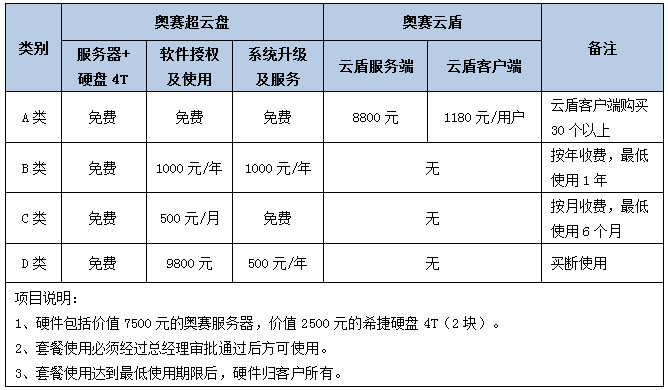 奧賽產(chǎn)品四款套餐,采取硬件免費,軟件服務(wù)收費形式,大大降低使用門檻。