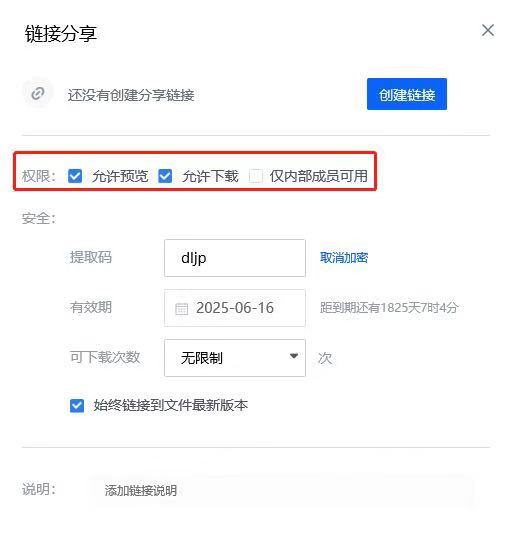用聯(lián)想Filez鏈接分享文件前,可設(shè)置3種不同的權(quán)限,分別是允許預(yù)覽、允許下載、僅內(nèi)部成員可用。