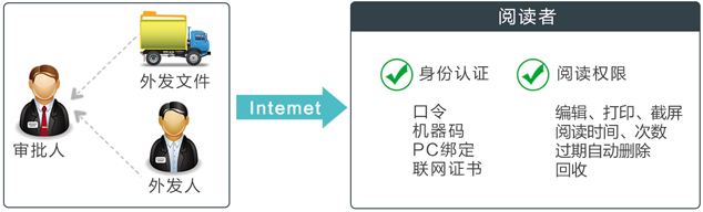 為了保障與合作單位之間的文件交互安全,奧賽云盾提供了文檔外發(fā)管理模塊。支持用戶根據(jù)外發(fā)文檔的重要性不同授予不同的認(rèn)證方式和訪問(wèn)權(quán)限; 設(shè)置成功后,外發(fā)文檔可通過(guò)各種方式外發(fā)。外部用戶無(wú)需安裝客戶端,經(jīng)過(guò)身份認(rèn)證后,即可在授權(quán)范圍內(nèi)訪問(wèn)該文檔。